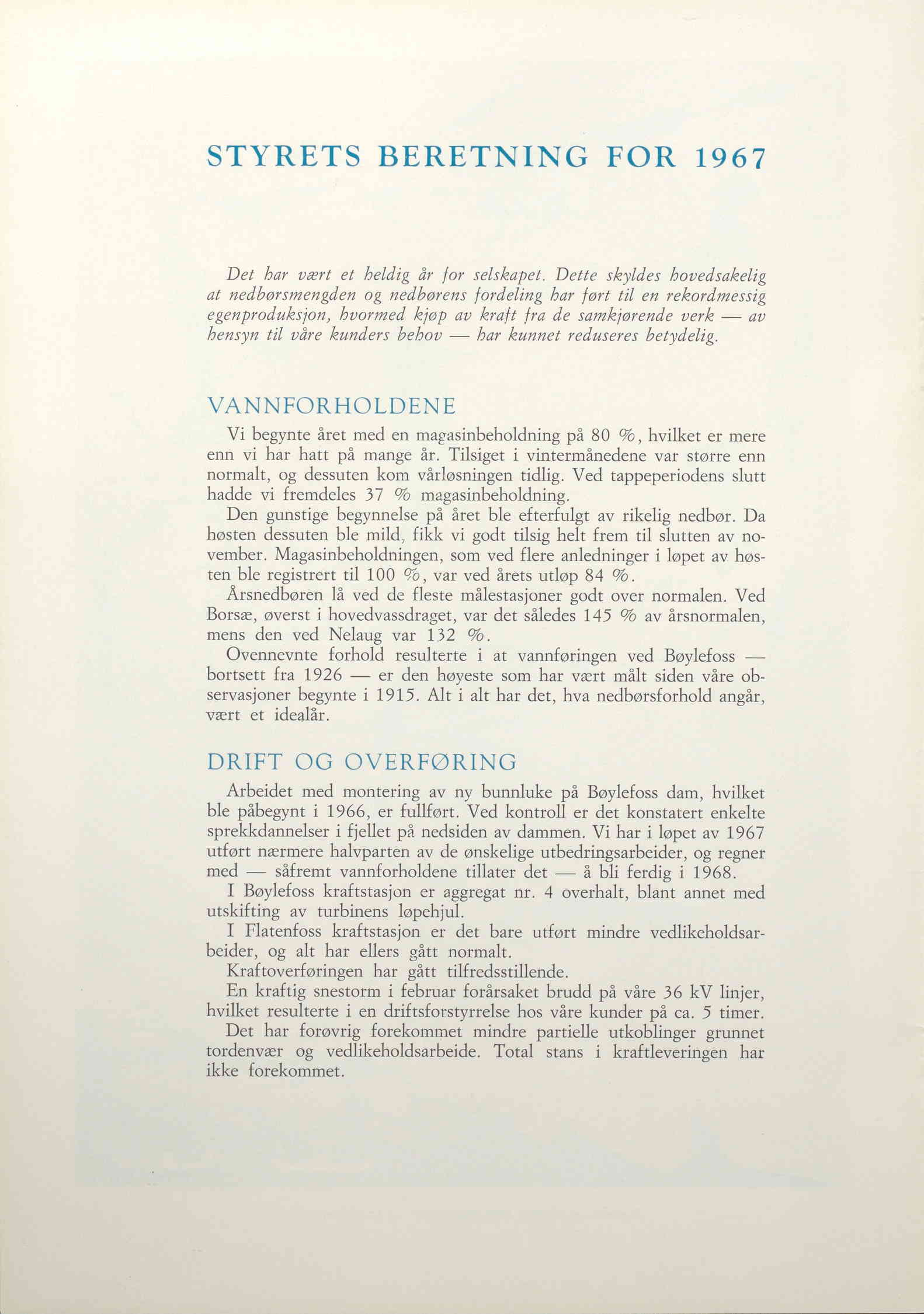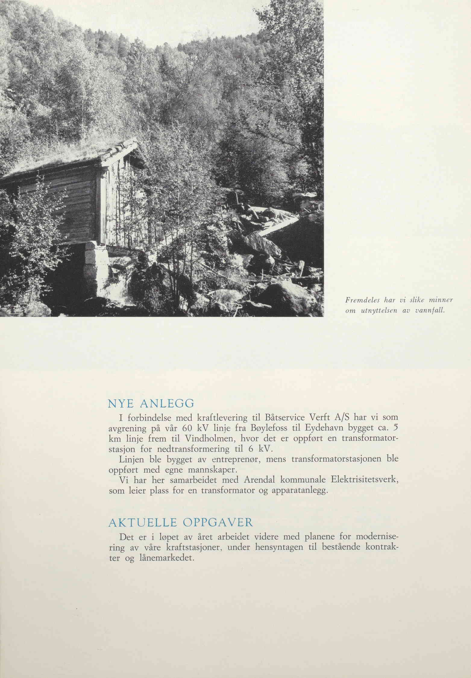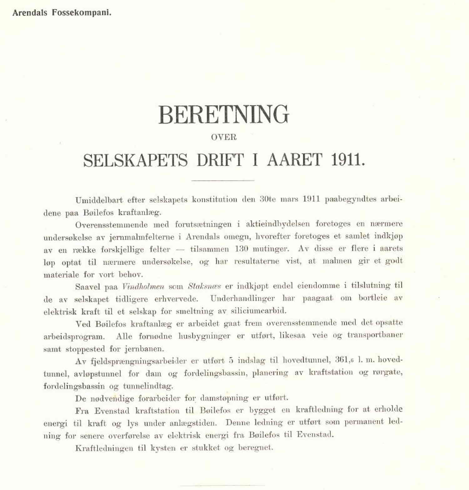Året 1911 var travelt for Aktieselskabet Arendals Fossekompani. I følge årsberetningen hadde byggearbeidene på Bøylefoss kraftanlegg i Froland startet umiddelbart etter at selskapet ble rekonstituert 30. mars 1911. I løpet av året hadde bygninger, samt viktig infrastruktur som veier, transportbaner og et jernbanestopp kommet på plass på Bøylefoss. Arbeidet med tunnelbaner, rørganger og damanlegget hadde også blitt påbegynt. Så langt gikk alt etter planen.