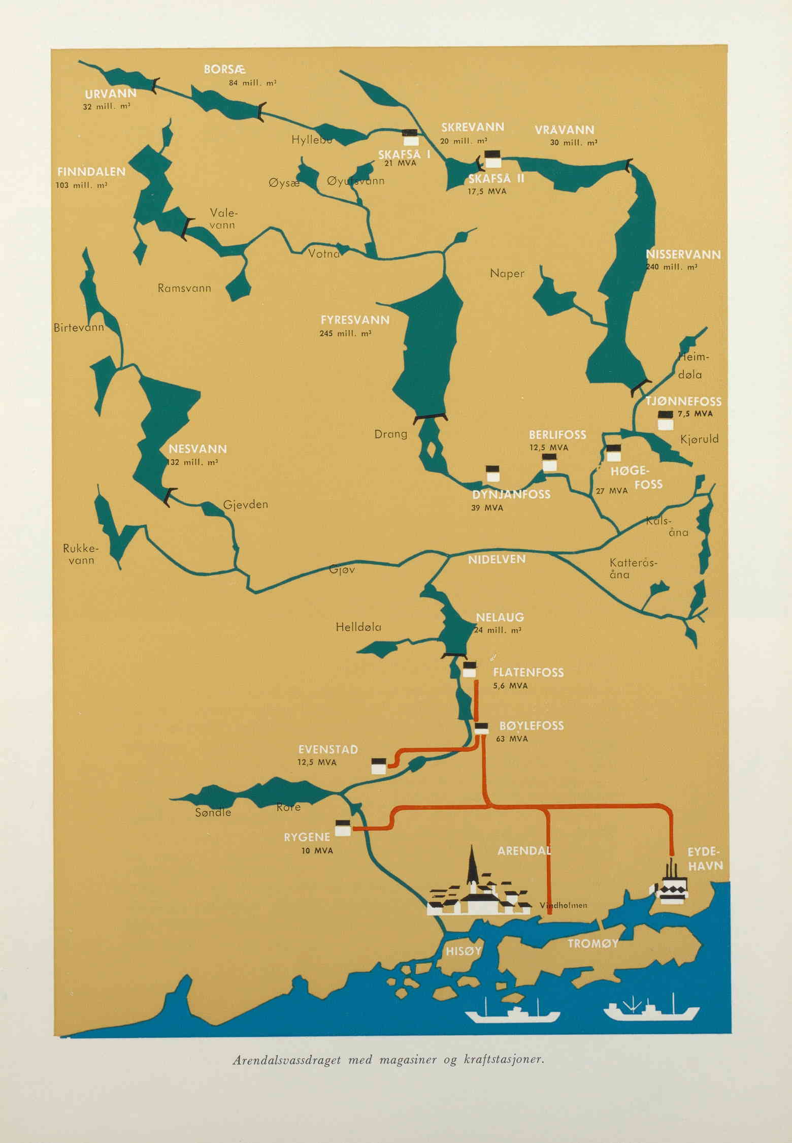 Tidlig viste det seg at det påtenkte jernverket på Vindholmen ikke var gjennomførbart. Selskapet stod nå med et kraftverk under bygning, men uten aktører som kunne få bruke all kraften. Sam Eyde viste handlekraft og med bistand fra statsminister Gunnar Knudsen, også han fra Arendal, ble det etablert nye kraftkrevende virksomheter i Arendalsområdet.