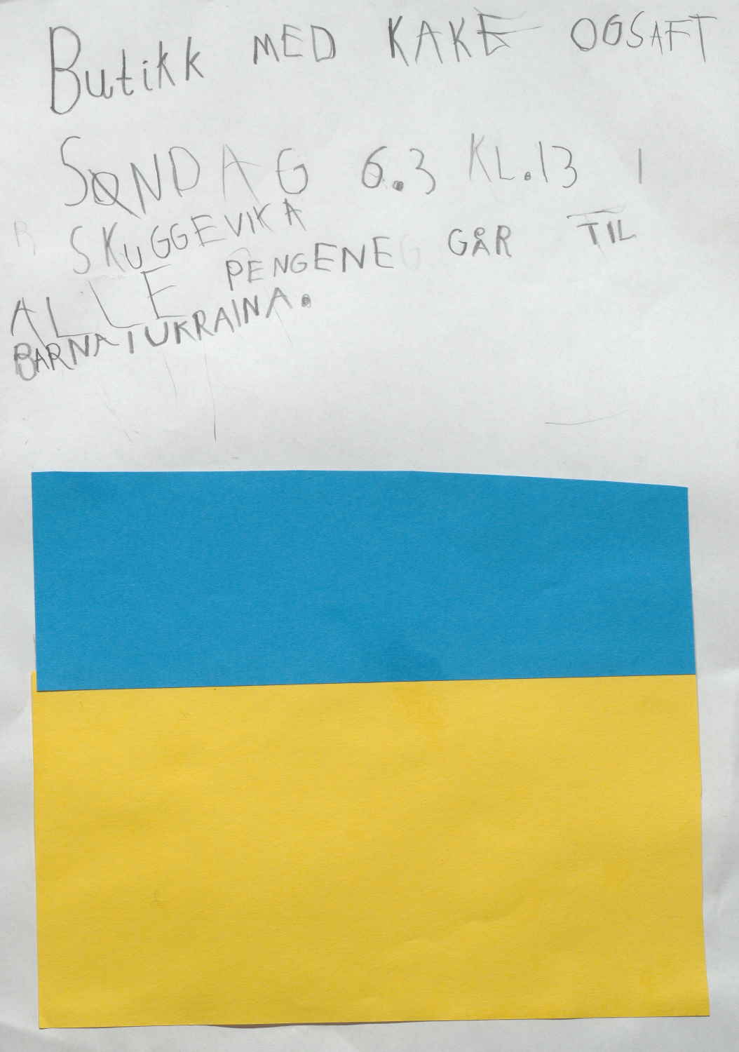 Søndag 6. mars 2022 var det flere barn i Lillesand som engasjerte seg for barn i Ukraina. Tre av dem var kusinene Lilja (7 år), Karelis (8 år) og Agatha (7 år). I Skuggevik hadde de rigget til en kafé.