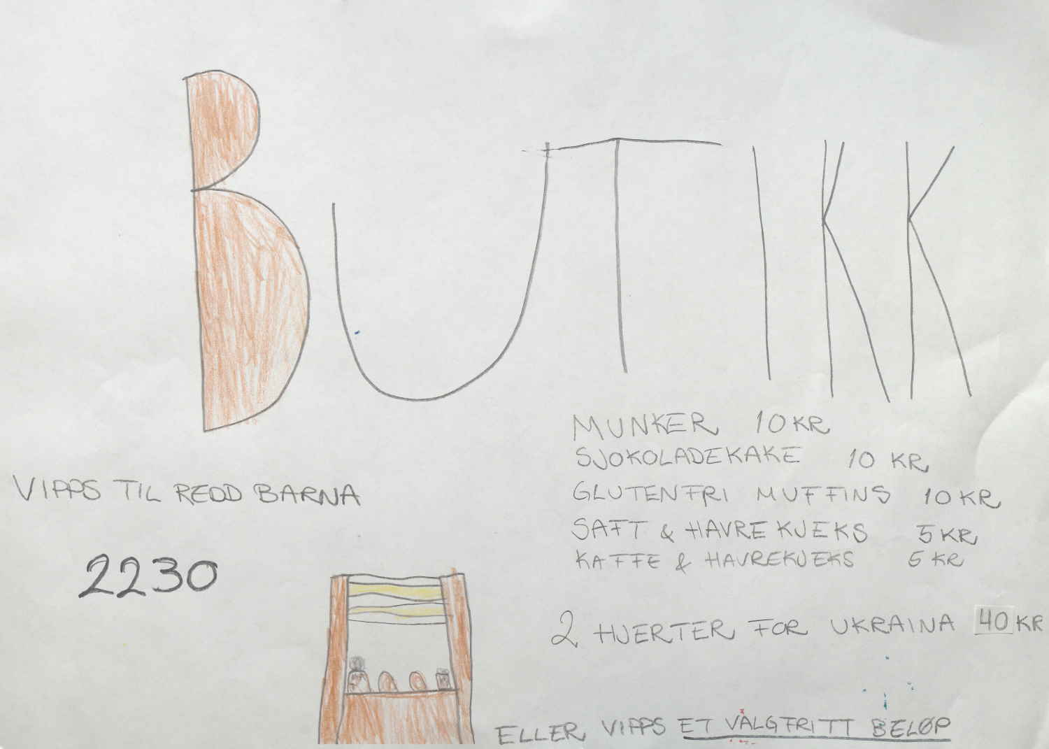 Der solgte de munker, kaker, kjeks, saft og kaffe. Forbipasserende kunne også kjøpe heklete hjerter og flagg i Ukrainas farger laget av Liljas storesøster. I løpet av dagen fikk kusinene inn 4 750 kroner. Alle pengene ble gitt til Redd Barna og deres nødsarbeid i Ukraina.