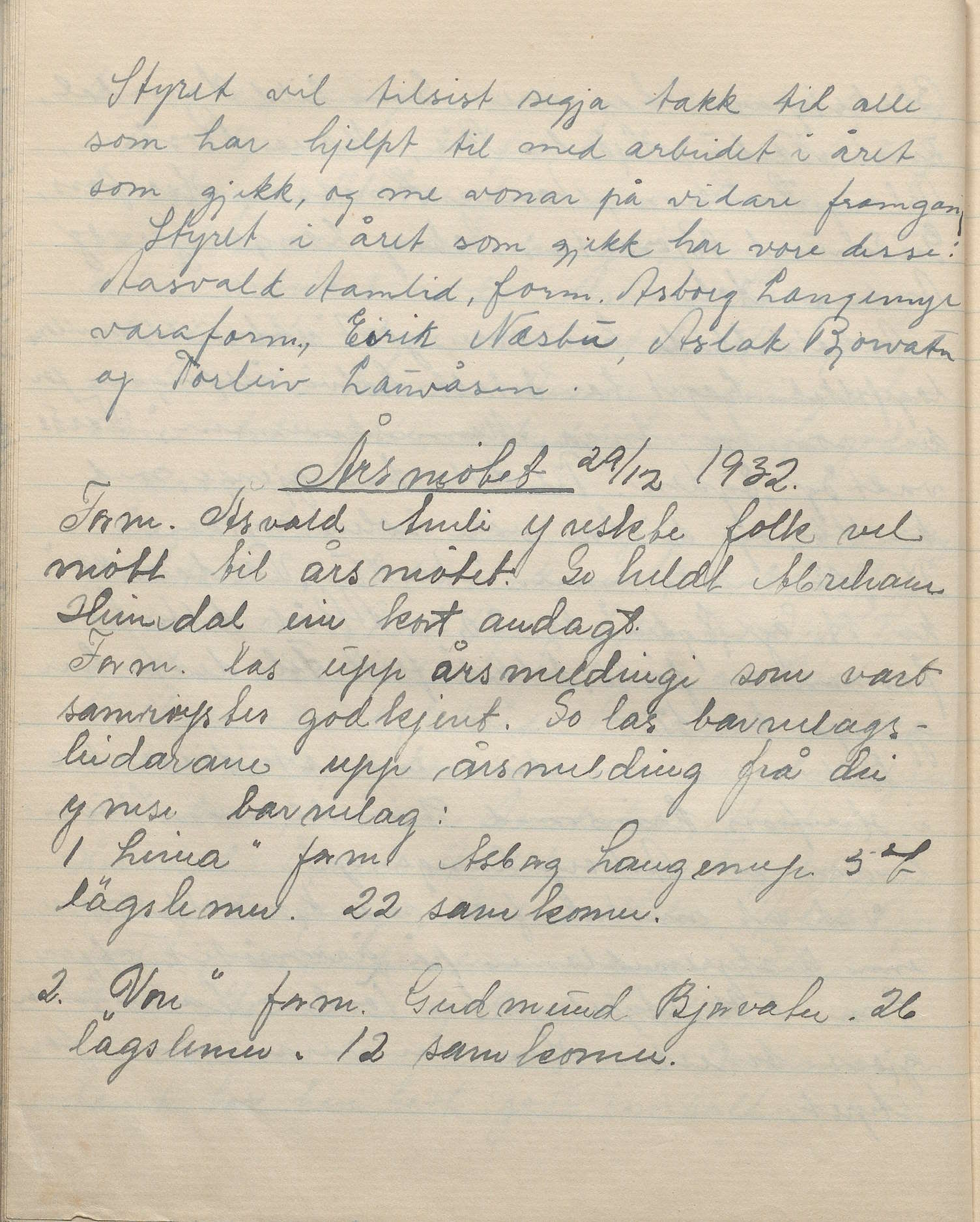 Lærer Asborg Langemyr var en lagets medlemmer. Før årsmøtet i 1932 sendte hun et skriv til lagets styre. Hun mente laget nå var blitt for stort.