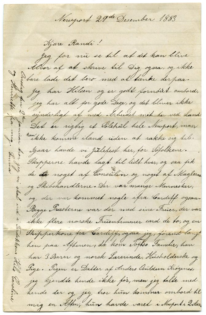 Etter en rundtur i Østersjøen ankom «Landbø» havnebyen Newport i Wales 10. desember 1883. Her ble skuta fra Arendal liggende til over nyttår. For Emma og mannskapet ble det julefeiring i fremmed havn.