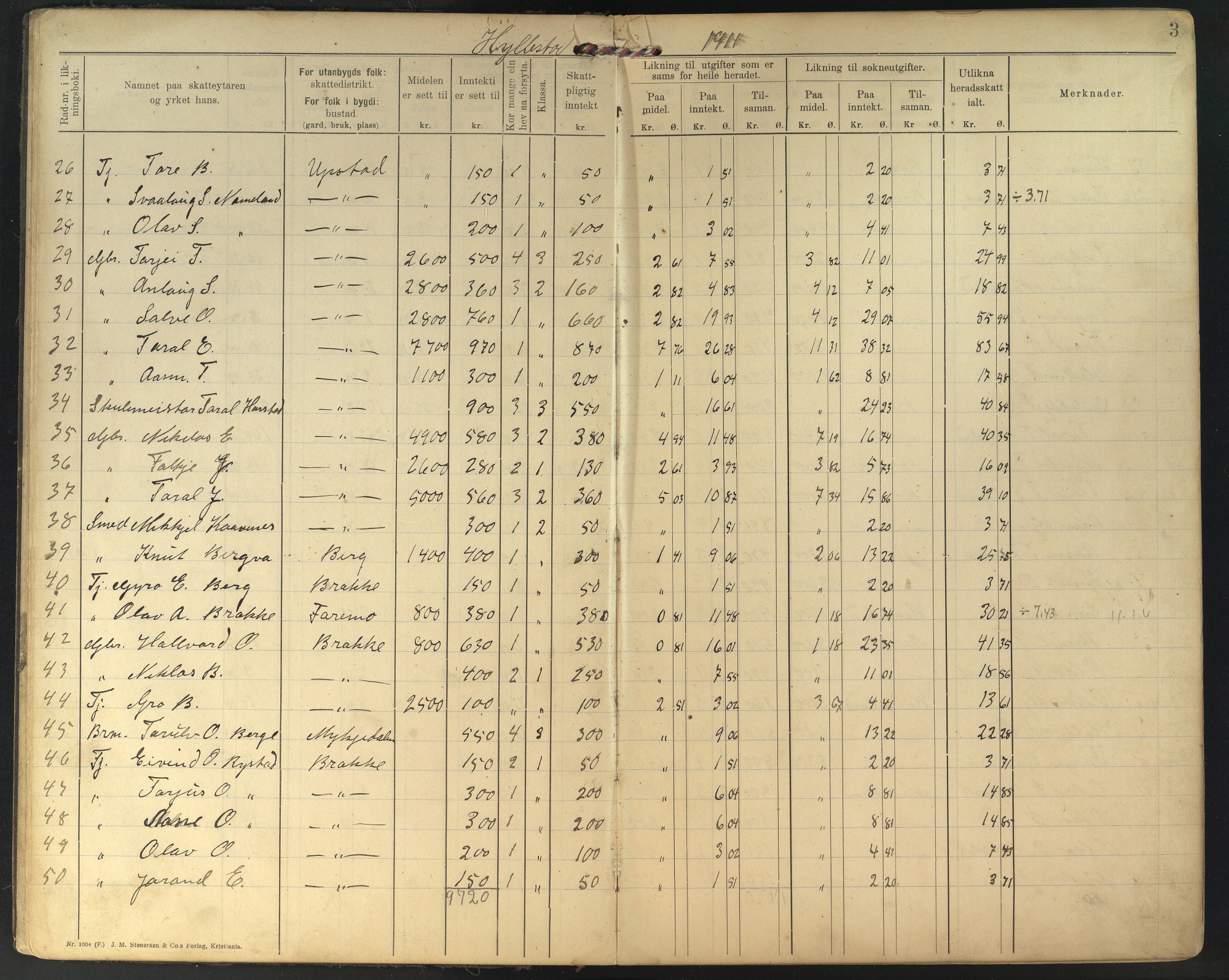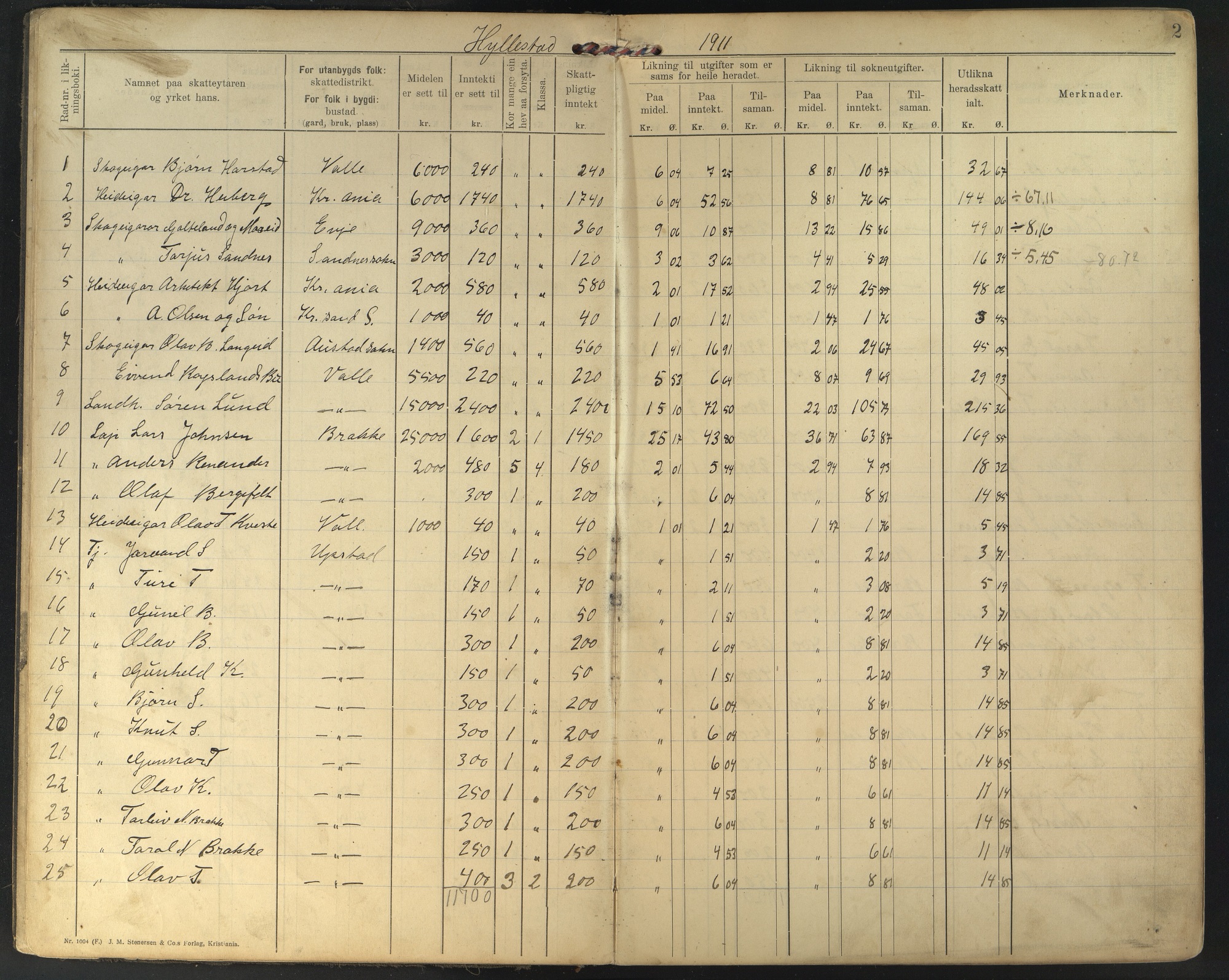 Kirkebøker og folketellinger er en mye brukt kilde for de som ønsker å finne avtrykk etter sine forfedre og formødre, men også i de kommunale arkivene finnes mange interessante kilder. Dette er et utdrag fra likningsprotokollen til Valle kommune som gir en oversikt over inntektene og formuene til innbyggerne i Hylestad for året 1911. (Arkivref: KA0940-310, Valle kommune, Likningsnemnda, F01 L0002)