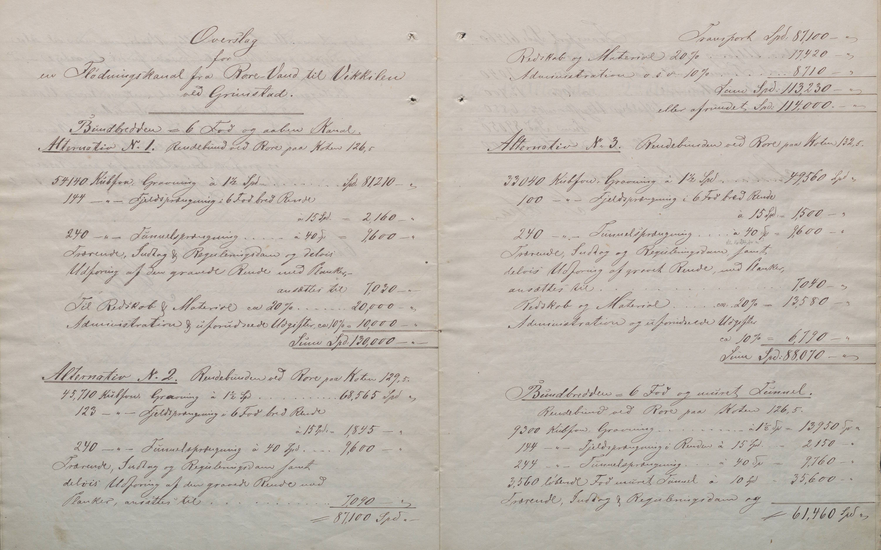 Kanalen ville bli rundt ¼ mil lang. Prosjektet ville innebære både fjellsprenging og tunnelarbeider. I sitt forslag presenterte Sætren flere alternativer. Det mest ambisiøse alternativet var en åpen kanal med en bunnbredde på 6 fot. Det var også det dyreste.