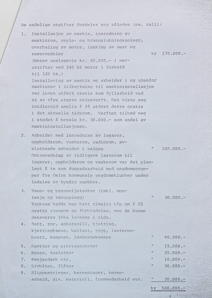 Høy og hans medhjelpere gav imidlertid ikke opp. I 1967 bevilget det nyetablerte Kulturrådet penger til skonnerten. I tillegg fikk skipet også noen midler fra private sponsorer. Restaureringsarbeidet var imidlertid svært tidkrevende.