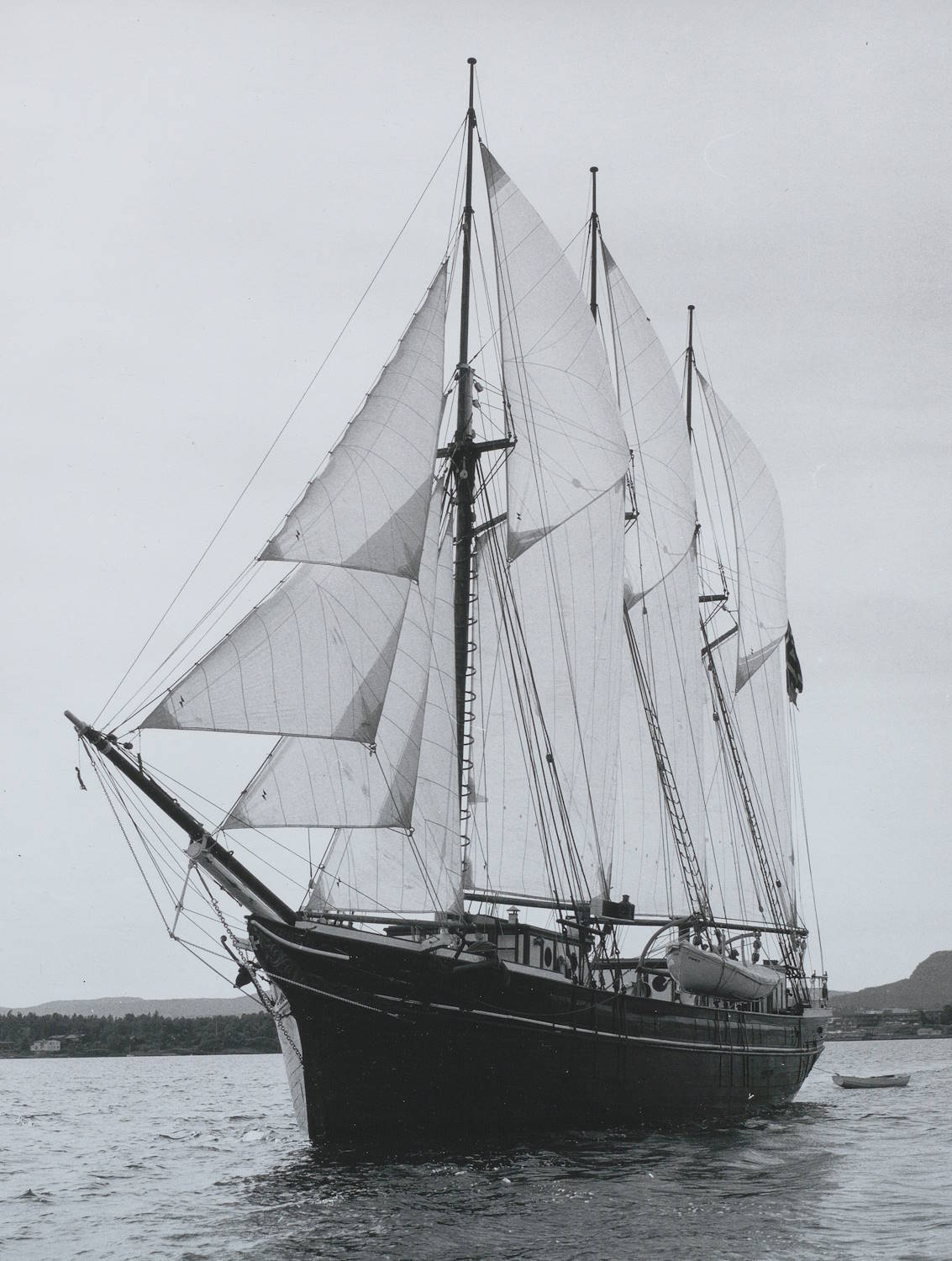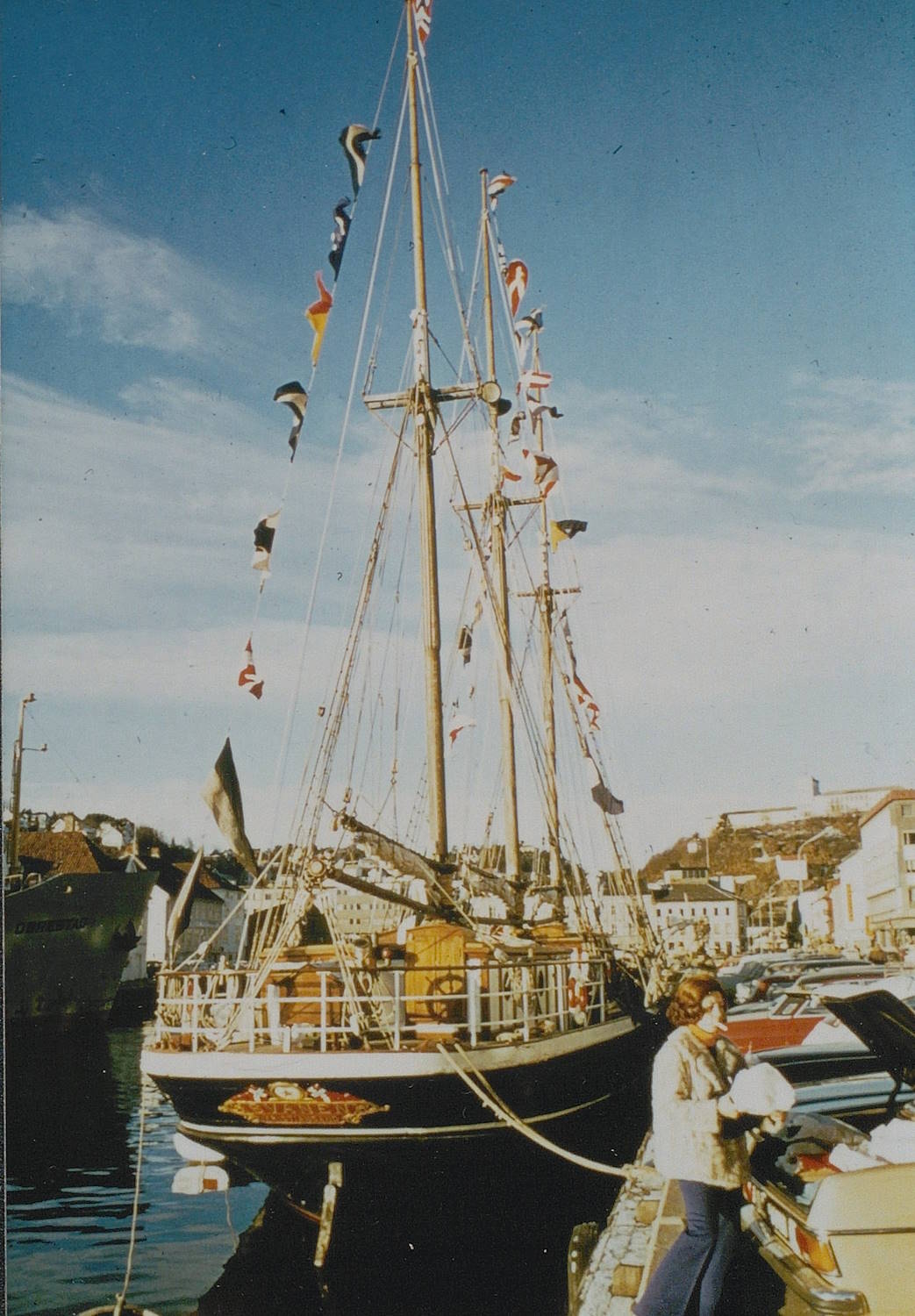 Bjørklund, Jarle: Svanen, Kristiansand: tremaster under tre flagg. 1995